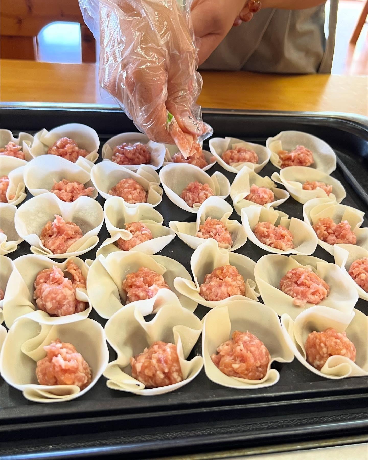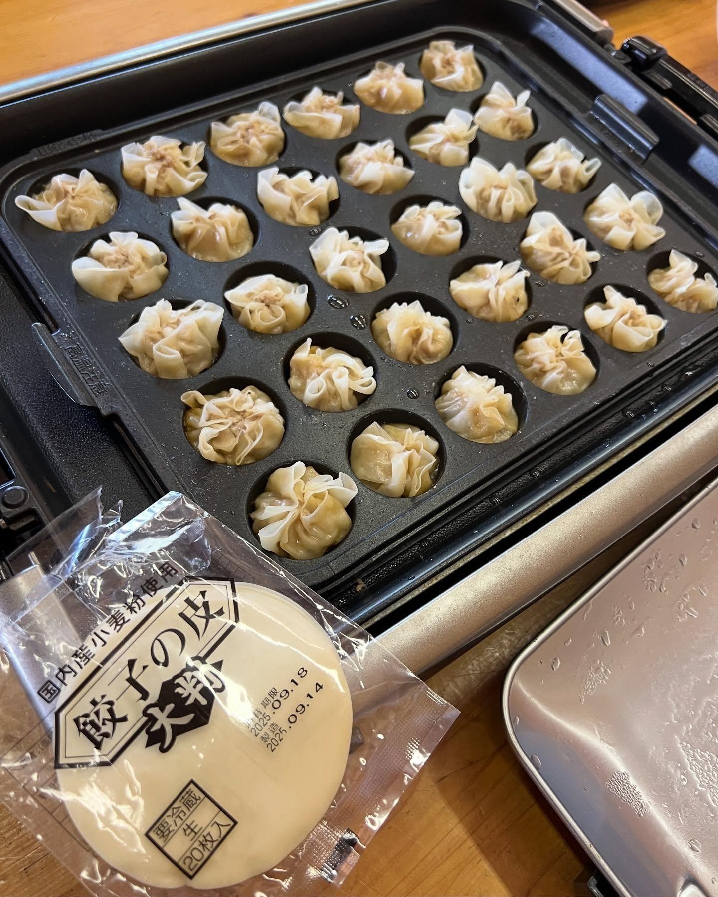 9/18 湖南学区会〜たこ焼き器でシューマイ作り〜を開催しました🌟 Tweet 9/18 湖南学区会〜たこ焼き器でシューマイ作り〜を開催しました シューマイの皮の代わりに、餃子の皮を使いました。 豚ミンチと調味料を袋の中で混ぜて袋の角を切って、ミンチ絞り出し 水を入れたらフタをして蒸し焼きに!!! 約10〜15分程で完成! 一度にたくさんできて、豚のうまみが美味しいシューマイでした #生活クラブ滋賀 #湖南学区会