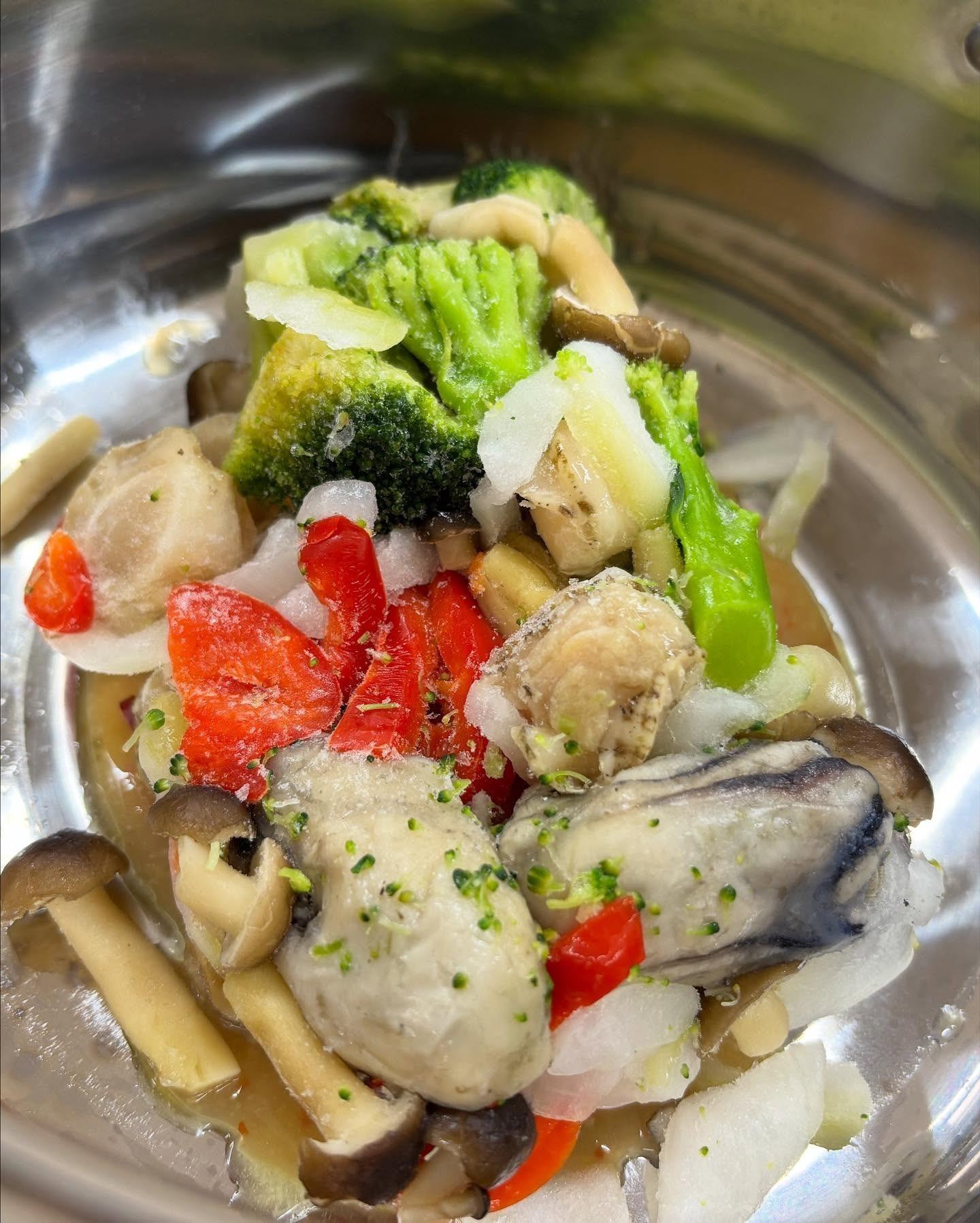 オリーブオイルソースと鷹の爪と食材を火にかけるだけのめちゃくちゃ簡単調理でしたが
