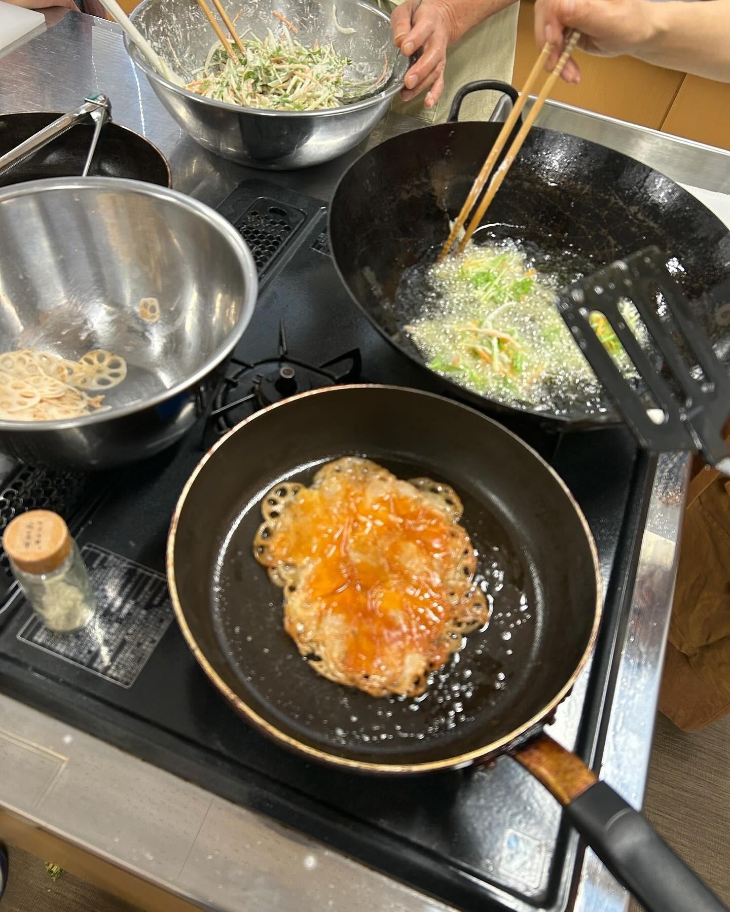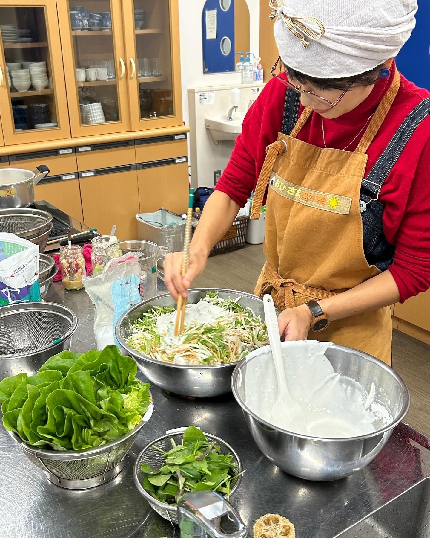 コンソメの代用方法や、かき揚げも米粉を使ったりなど、“おひさま堂ほんぽ”ならではの工夫を聞きながら、