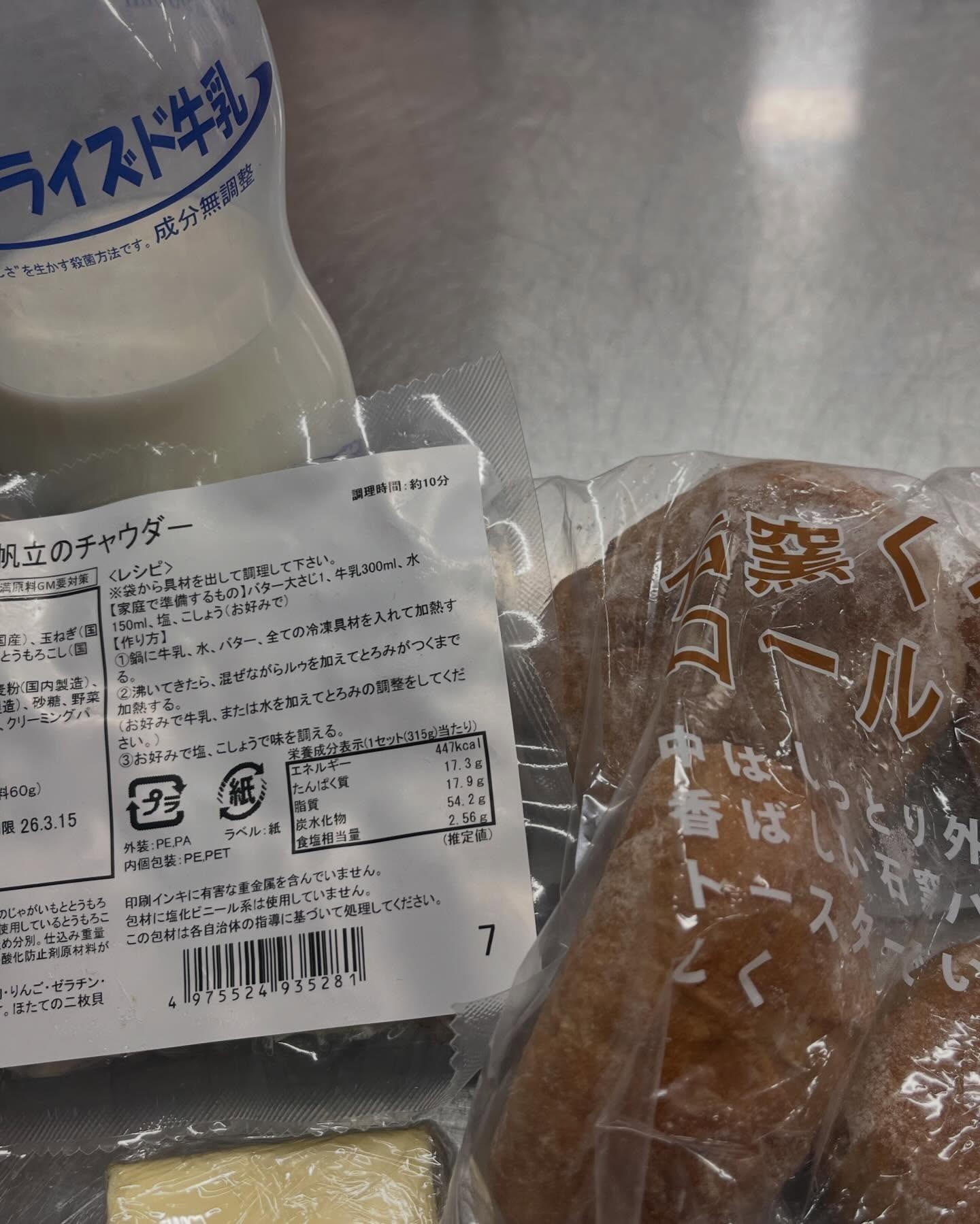 帆立のチャウダーと石窯くるみロールを食べました♡